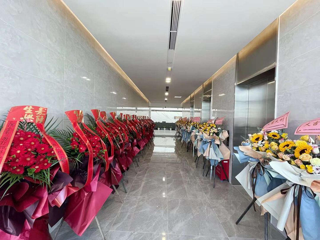 公司新址入口,摆满了送来的鲜花与寄语,花团锦簇的背后,是社会各界朋友对金石三维的祝福与期待。上午11时8分,伴随着倒计时,在锣鼓声声中,江泽星董事长与众嘉宾一同鸣放礼炮,一同剪下红色彩带,随后为公司揭牌,寓意着金石三维在未来的日子里将迸发出源源不断的生机与活力,带领企业勇攀顶峰。