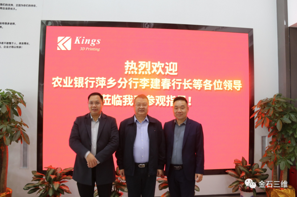 2月17日,中国农业银行萍乡分行行长李建春一行莅临深圳金石三维总部考察指导。